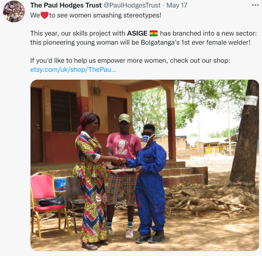 In 2022 we are supporting 50 young women to complete or continue their vocational apprenticeship in areas including tailoring, weaving, hairdressing and – new for this year – welding.